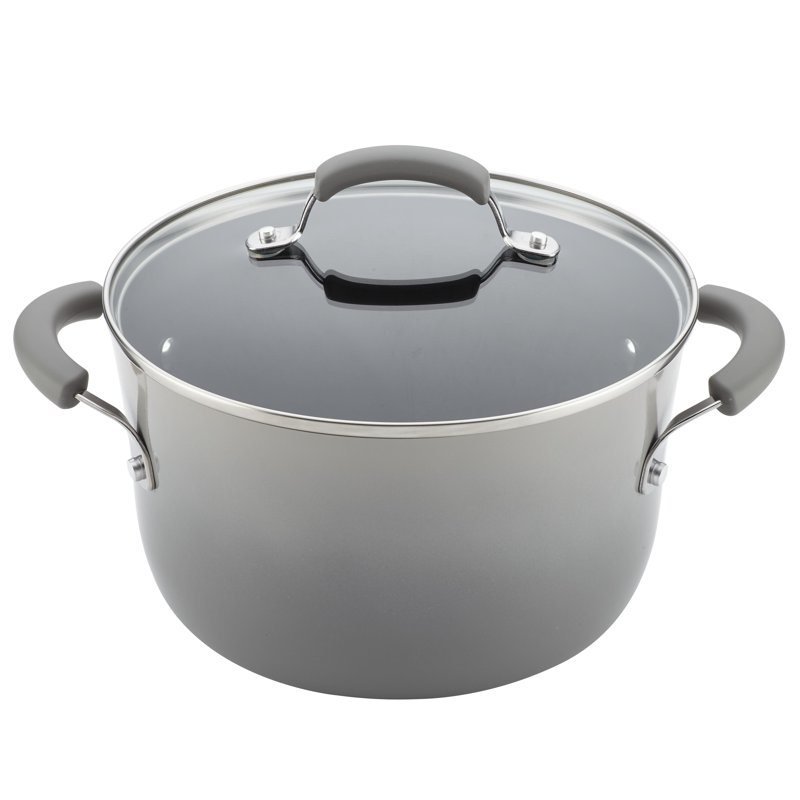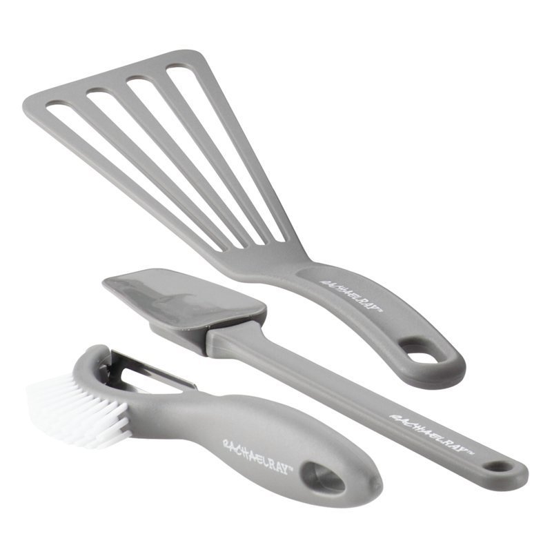Cooks new and experienced alike will appreciate the essential pieces included in the Classic Brights Hard Enamel Nonstick 15-Piece Cookware Set with bakeware and kitchen tools. Whether your cooking tasks are simmering and searing or browning and baking, cookware gets the kitchen set. From the reliable cooking performance to the fun, contemporary colors and durable materials, the pots and pans in this collection can handle everyone’s favorite dishes, and then some. Sturdy aluminum construction promotes even heating, helping to reduce hot spots that can burn foods, and the bold two-tone enamel cookware exteriors show plenty of stylish kitchen personality. hard enamel cookware features durable nonstick interiors that provide beautiful food release and make cleanup snappy. Oven safe to 350F, the cookware’s comfortable grippy handles are double riveted for extra strength, and the shatter-resistant glass lids lock in heat and moisture. The cookware comes with two nonstick round cake pans that sport a solid pop of coordinating color and extra-large handles, and are oven safe to 450F. And the cooking tools included – two nonstick-suitable cooking spoons and Rach's clever Veg-A-Peel fruit and vegetable peeler – are smartly-designed so your cooking really cooks! Make, bake and share favorite foods and show off a lot of personality with the bold and contemporary Classic Brights Hard Enamel Nonstick 15-Piece Cookware Set.