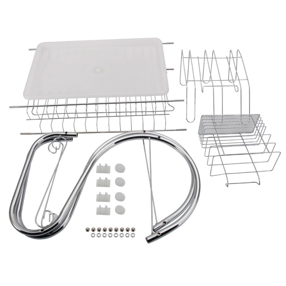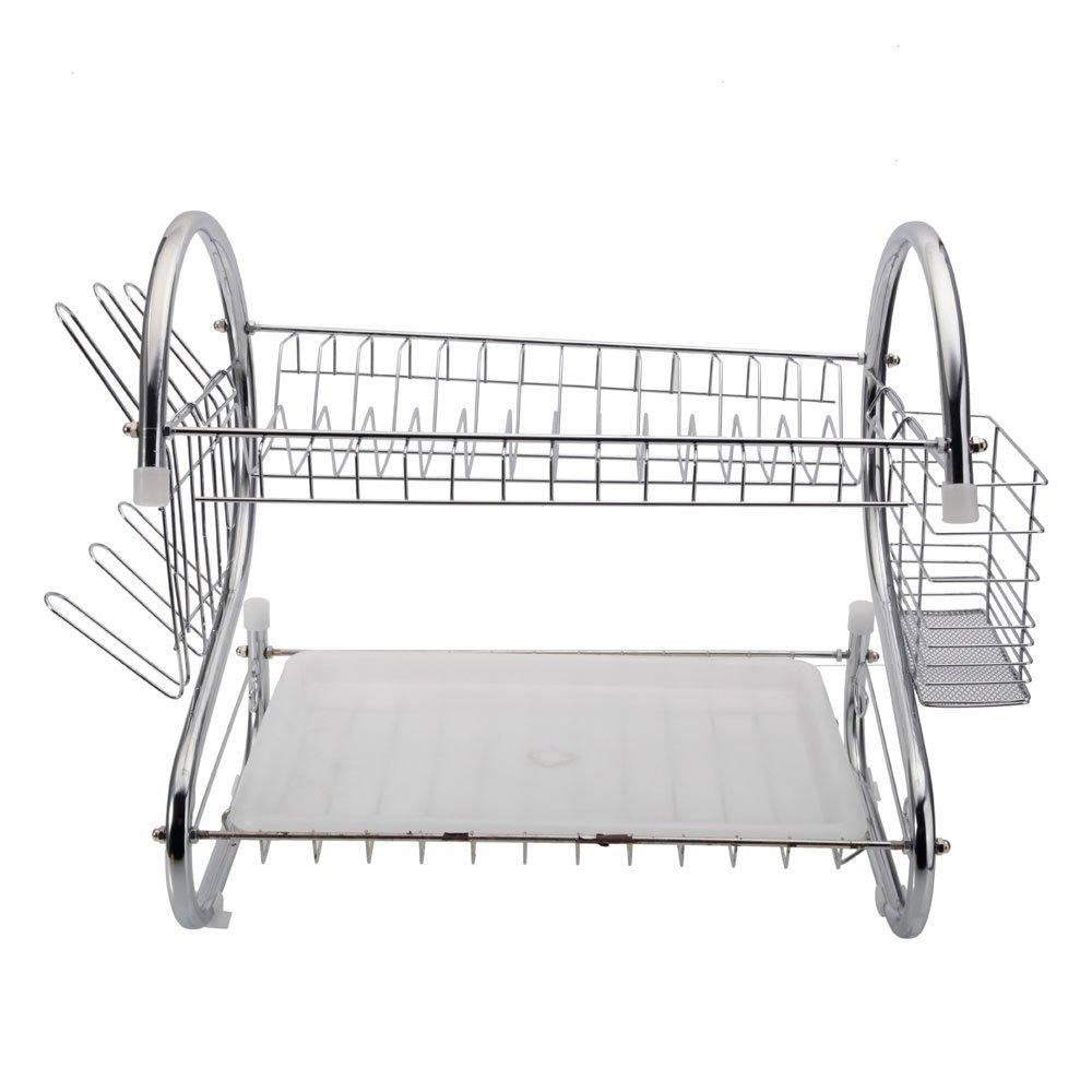 Home > 2 Tier Dish Drying Rack Drainer Stainless Steel Kitchen Cutlery Holder Shelf