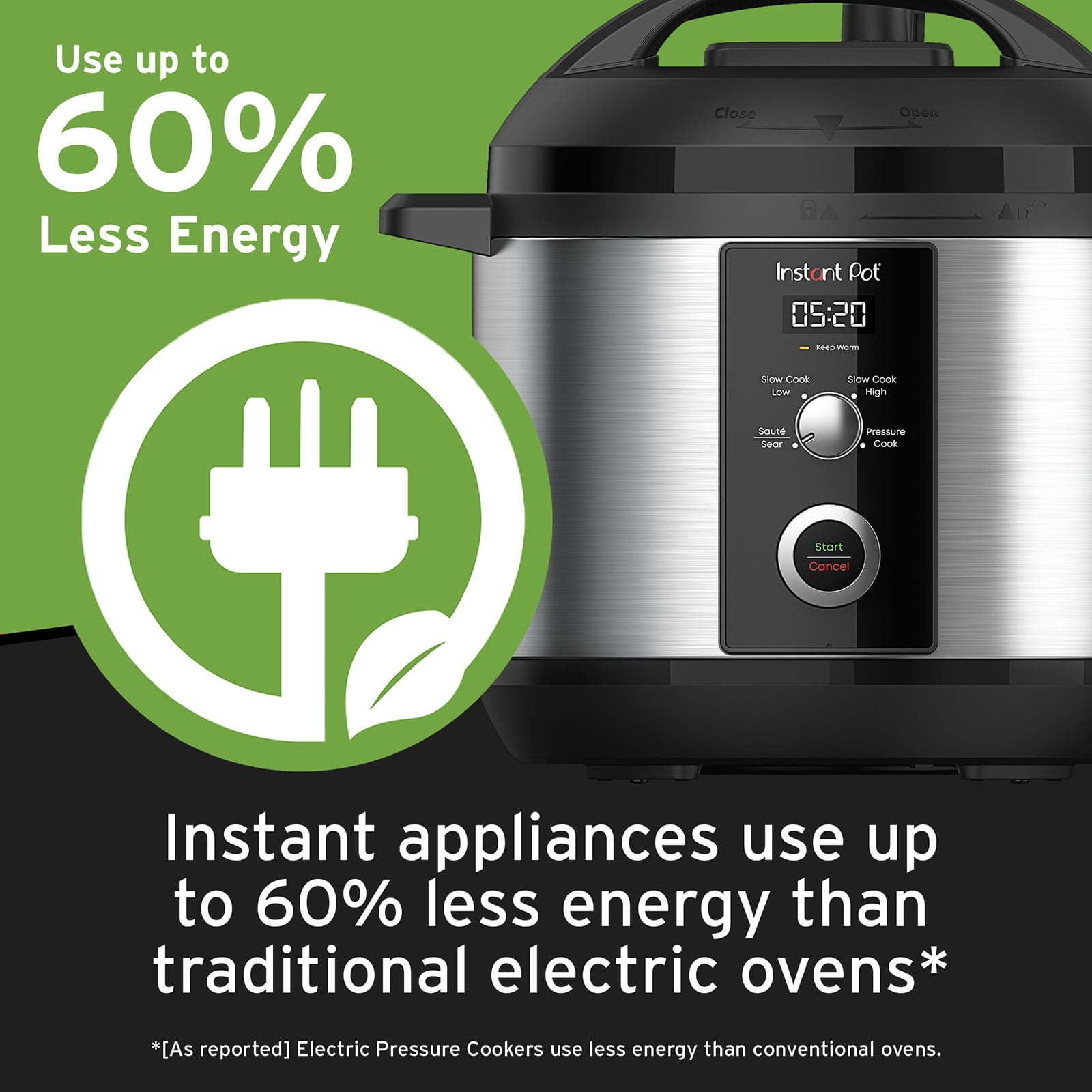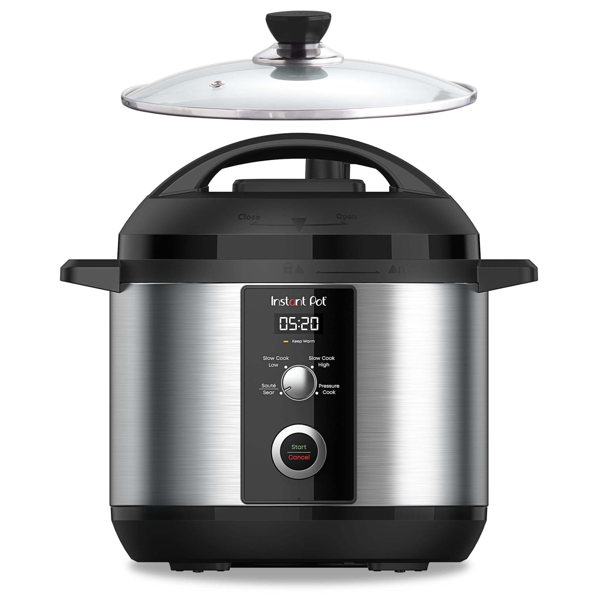 Versatile Slow Cooker: Slow cook your perfect family recipes with two temperature settings Fast, Delicious Meals: Option to pressure cook up to 70% faster and more energy efficient than other cooking methods Simple Controls: 4 pre-set cooking settings to slow cook high or low, sauté, and pressure cook. 3-in-1 Functions: Slow cook, sauté and pressure cook Easy Clean-Up: Dishwasher-safe lids and cooking pot Perfect Sautéing: 6QT Aluminum cooking pot with non-stick ceramic coating for even heating 6 Quart Large Capacity: Cook up to 6 servings, for growing families, meal prep, and batch cooking 10+ Proven Safety Features: Overheat Protection, easy seal safety lid lock and more Includes: Bonus glass lid for slow cooking and serving