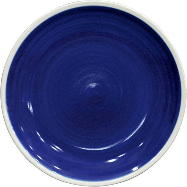 Serve family and guests on these delightful Better Homes and Gardens Indigo Swirl Dinner Plates. They are hand-painted making each piece unique and they feature a cream edge and back.These blue stoneware dinner plates are wonderful for everyday use and will brighten up a kitchen or table. They are dishwasher safe so clean up is a breeze. These Better Homes and Gardens dinner plates come in a convenient set of six. Add some style to your kitchen with them. Made of durable stoneware, they are oven-safe up to 450 degrees and can go from range to table with ease. Use them for a small, intimate meal or a larger gathering. These dinner plates are also microwave-safe so you can use them to re-heat meals. They are versatile and functional. Use them to serve fancy dishes or down-home meals.
