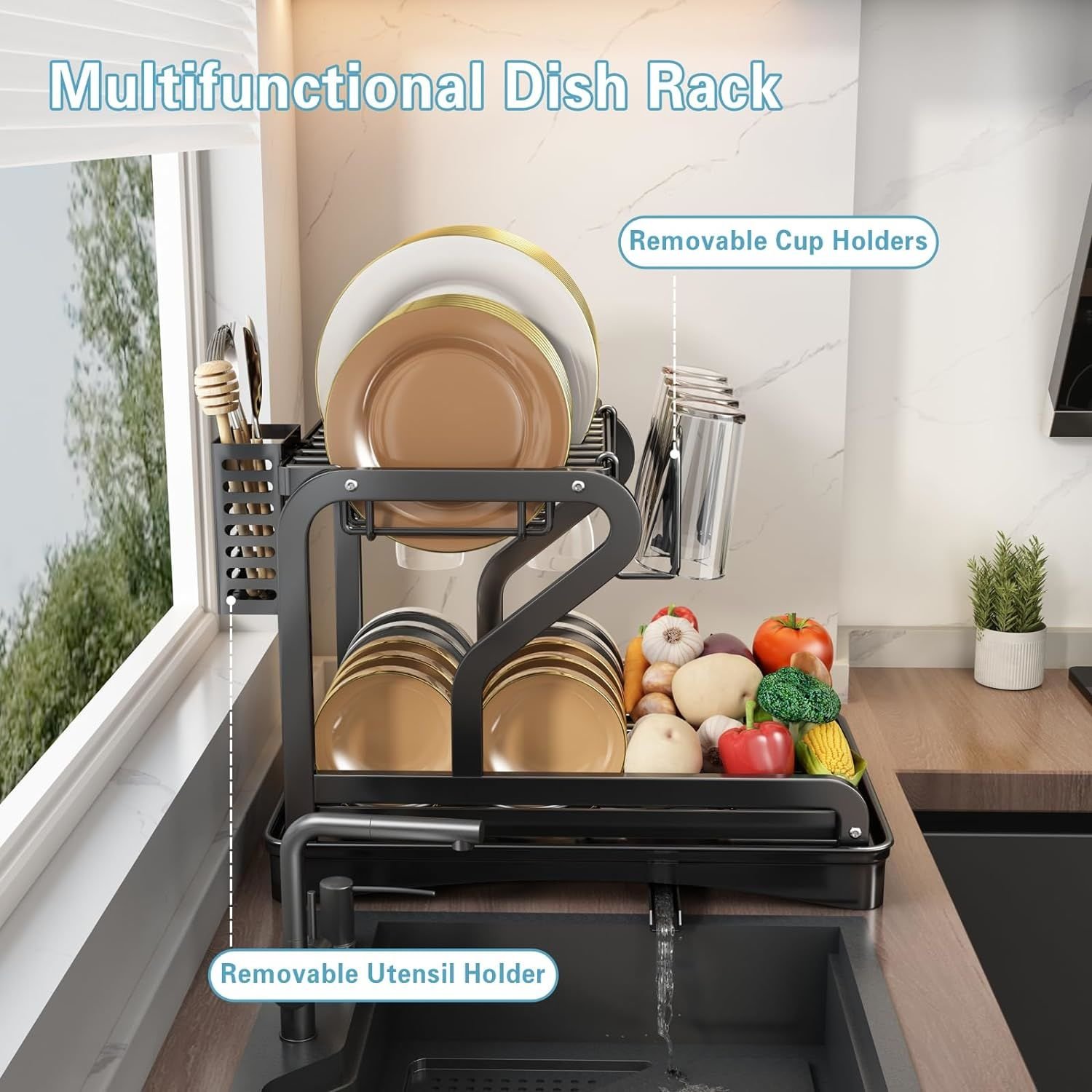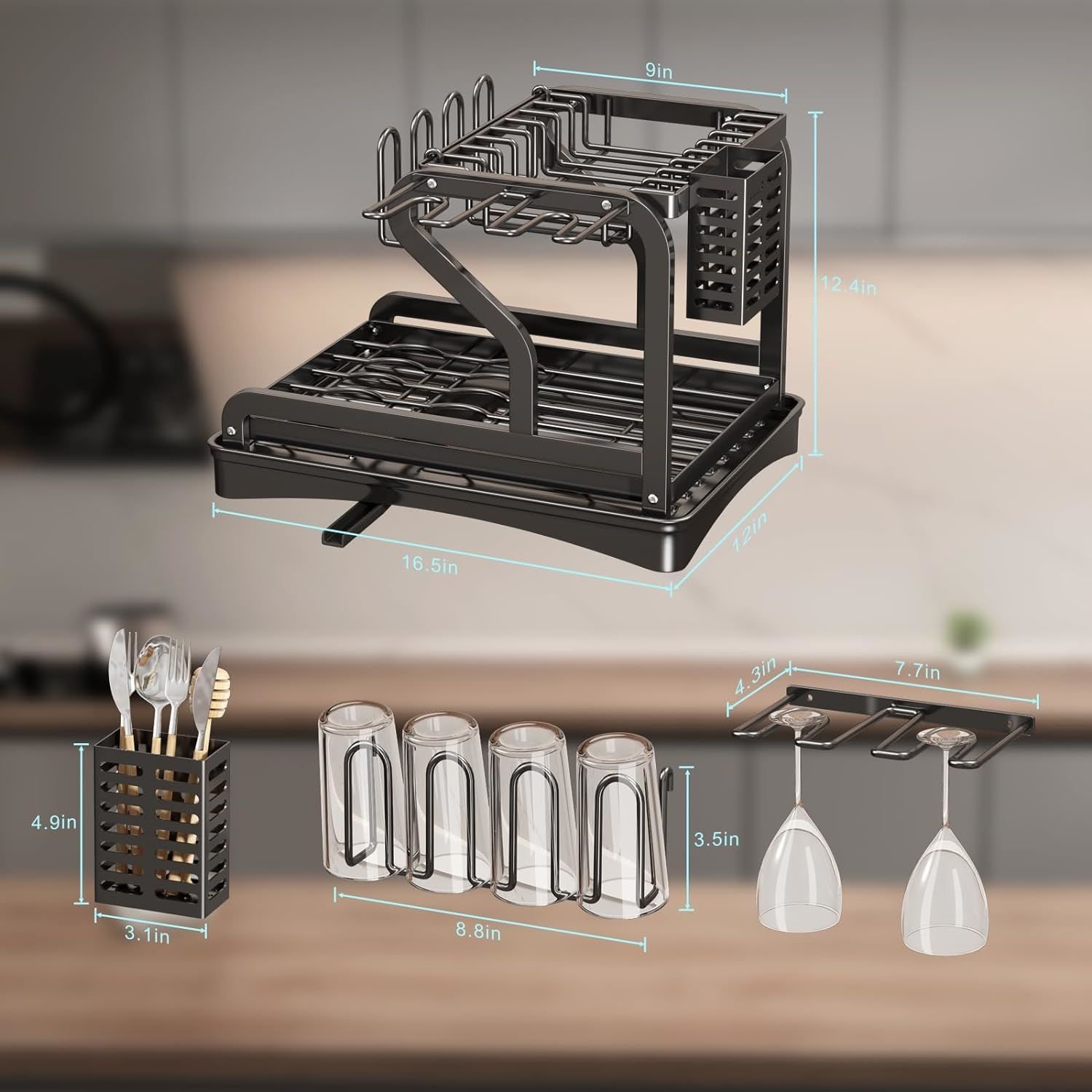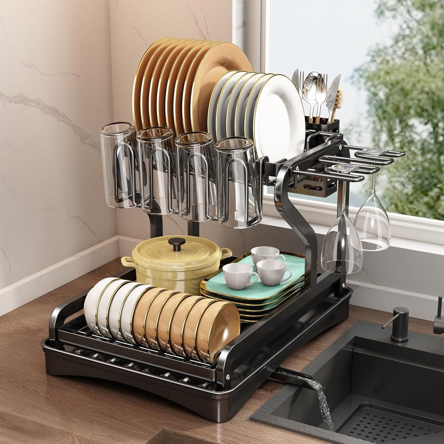Dish Drying Rack 2 Tier Metal Kitchen Dish Rack with Utensil Holder Dish Drainers and Drainboard Sink Rack for Dishes