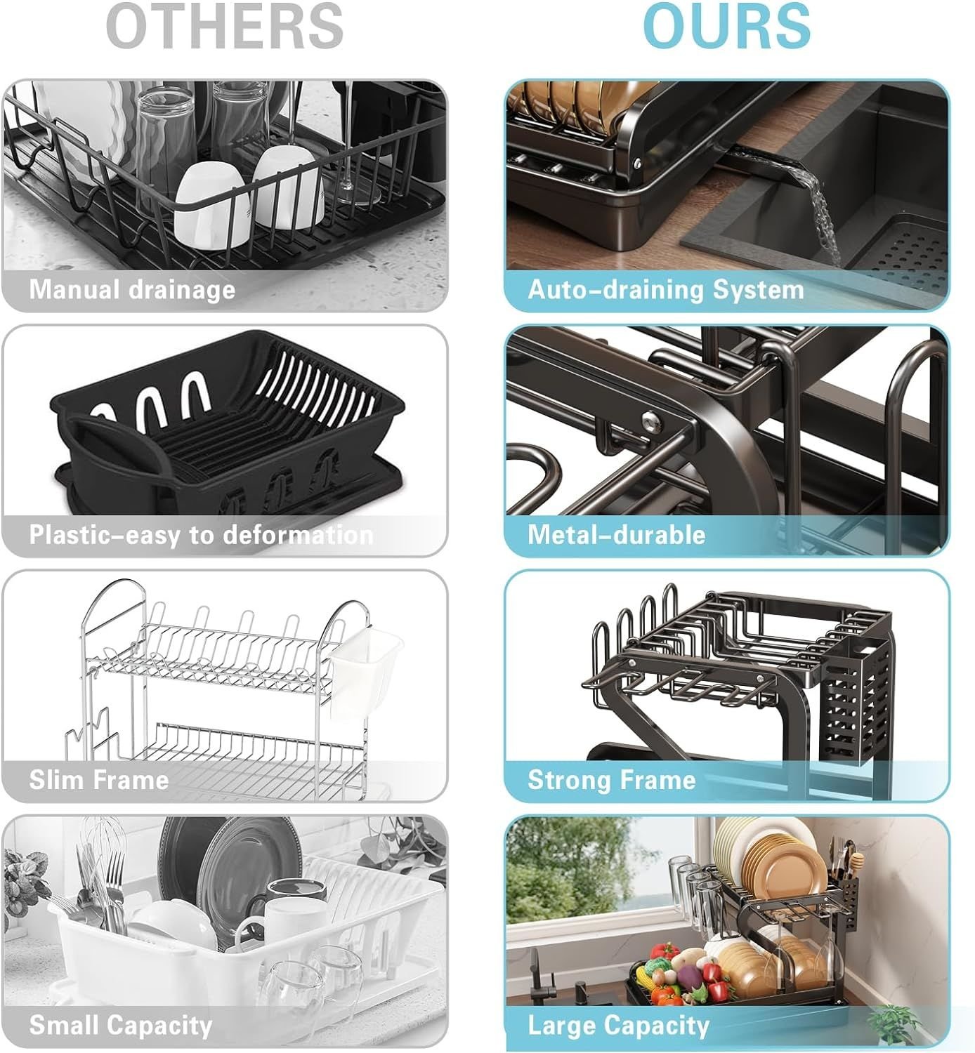 1.Superior Durability: This dish drying rack is built to last! With its robust and thicker frame, it exudes stability and reliability. No more worries about flimsy racks or dishes toppling over. Invest in quality that stands the test of time.