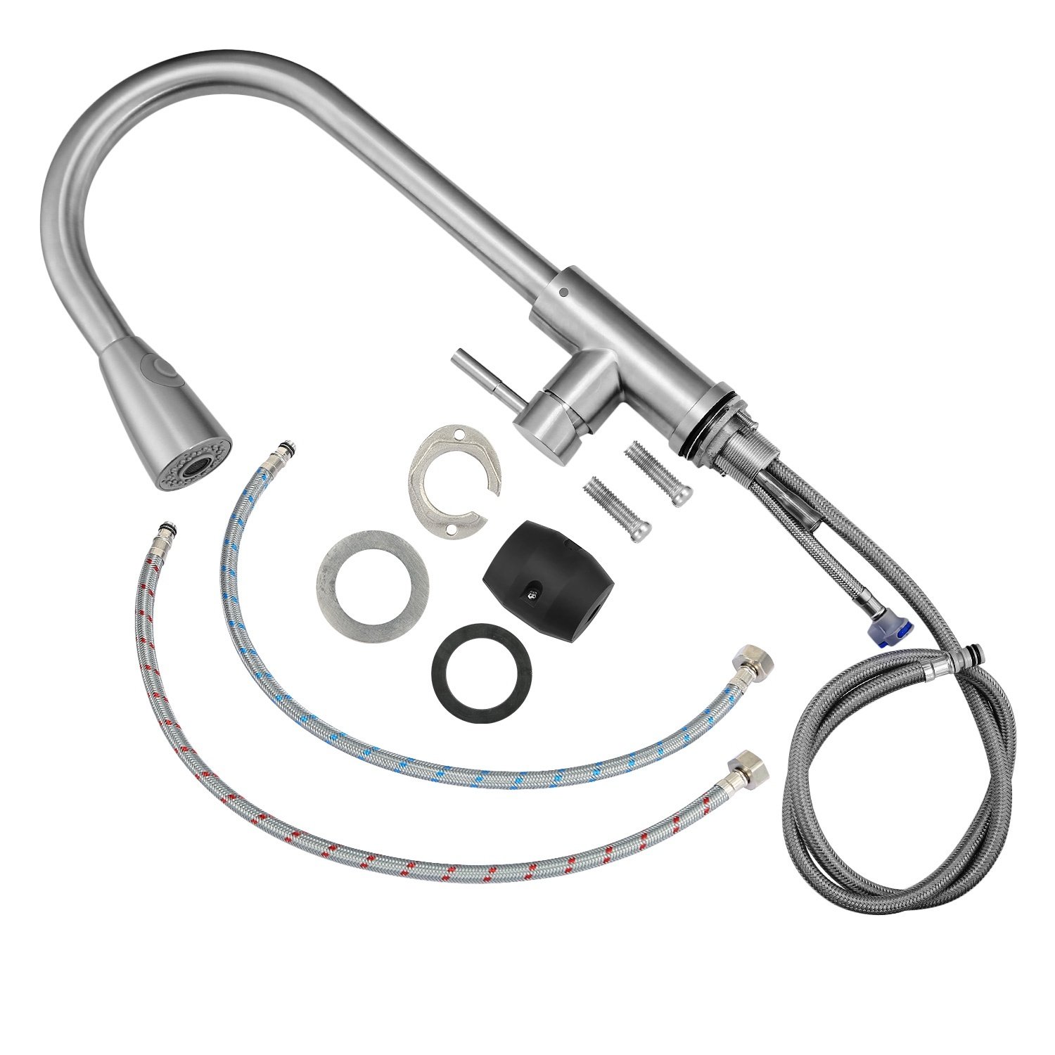 Home > Kitchen Faucets Single Handle Kitchen Sink Faucet Brushed Nickel Stainless Steel Pulldown Head Faucet